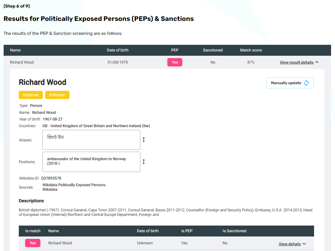 - It is now possible to run PEP / Sanctions screening for individuals independent of conducting advanced identity verification.