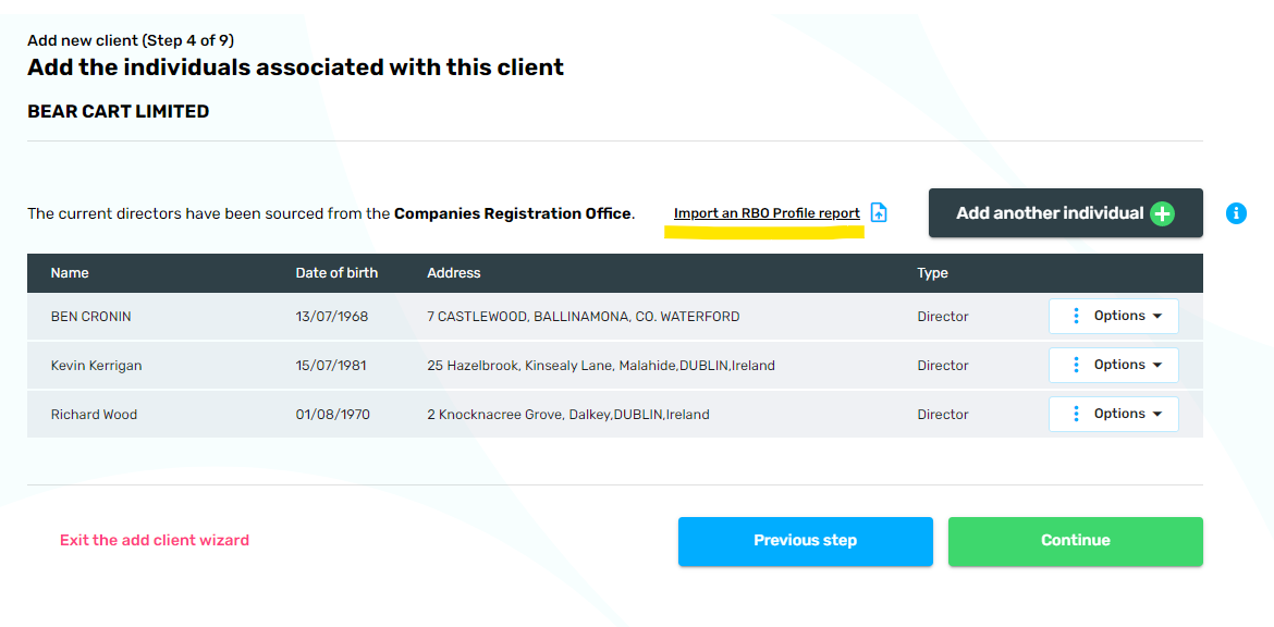 - Adding a Client from the UK will now automatically populate the Directors and Beneficial Owners (persons of significant control)
